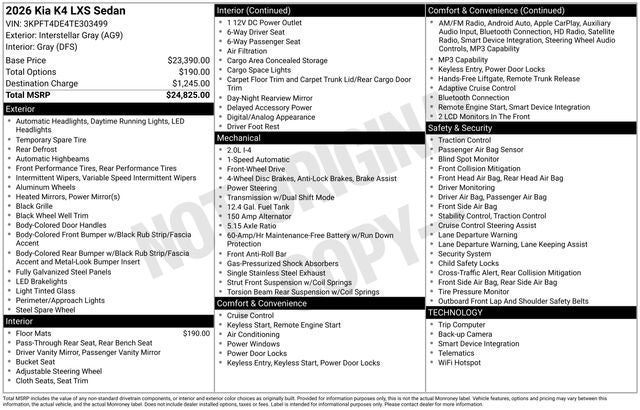 2026 Kia K4 LXS