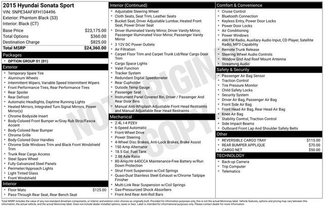 Heated Driver Seat, Back-Up Camera, Satellite Radio, iPod/MP3 Input, CD Player Hyundai 2.4L Sport with Phantom Black exterior and Gray interior features a 4 Cylinder Engine with 185 HP at 6000 RPM*.