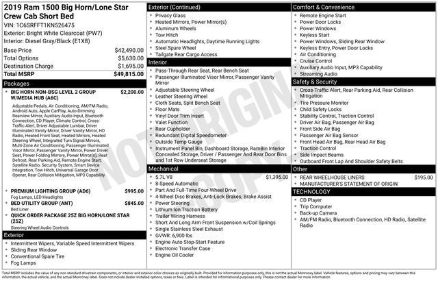 We invite you to experience the power and refinement of this 2019 Ram 1500 Big Horn/Lone Star for yourself. Schedule a test drive today and discover how this impressive truck can elevate your driving experience. We're confident that once you get behind the wheel, you'll be captivated by its impressive performance, advanced technology, and premium features.