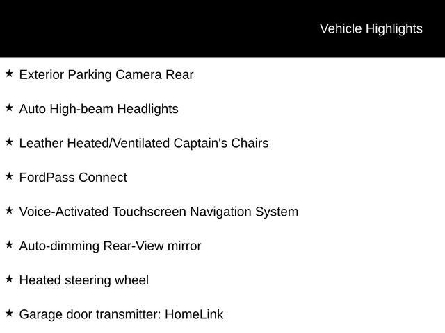 Step inside, and you'll be greeted by a cabin that is both spacious and luxurious. The leather-trimmed heated and ventilated captain's chairs offer exceptional comfort and support, while the SYNC 3 system with voice-activated navigation and the premium B&O sound system provide the ultimate in entertainment and connectivity.