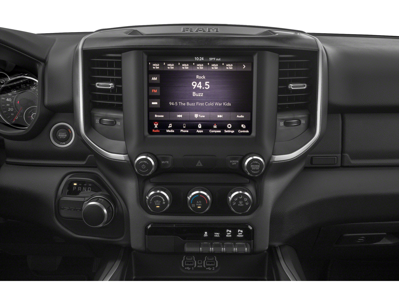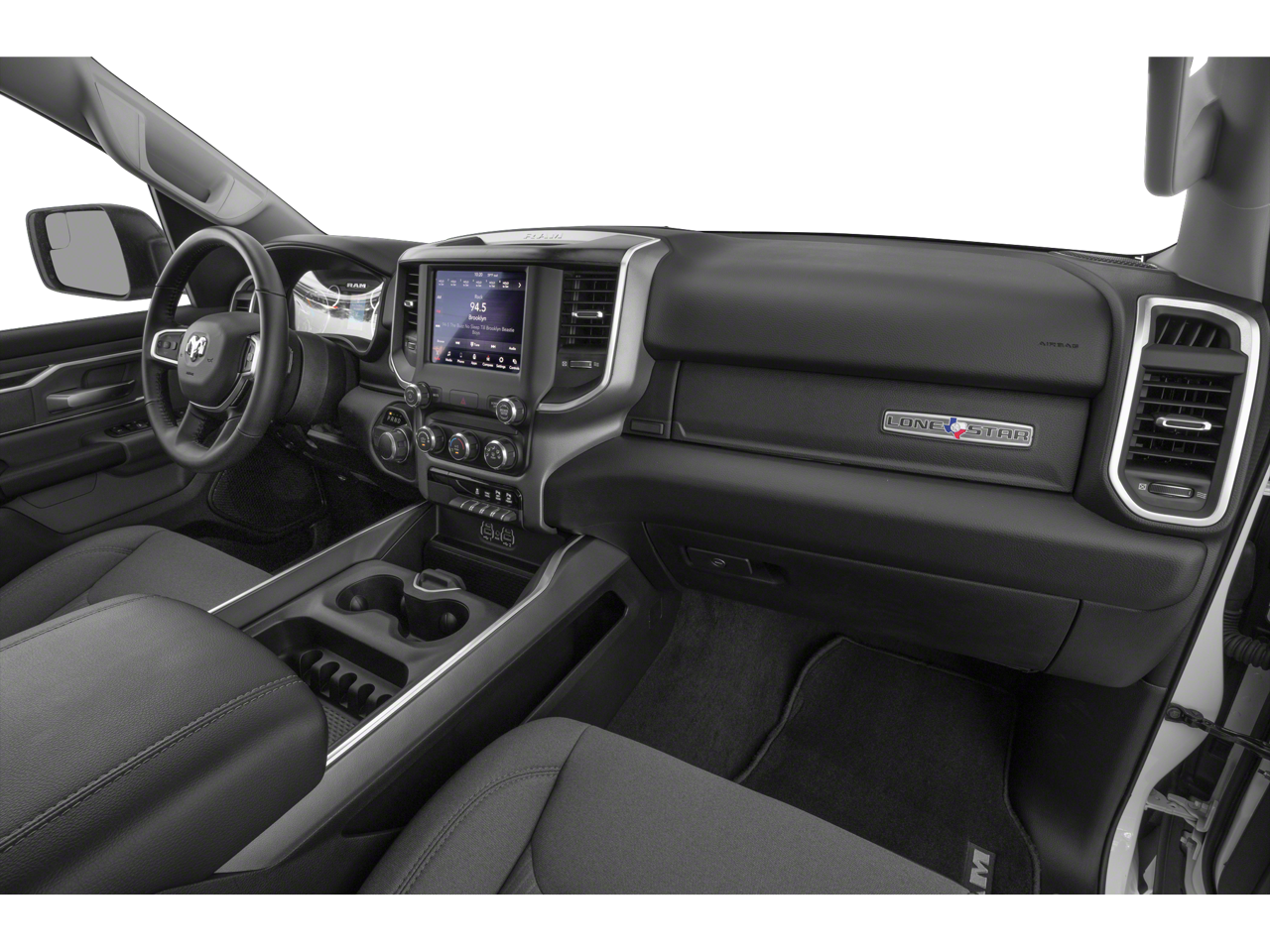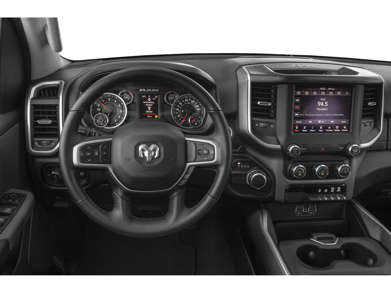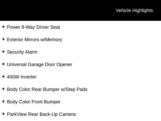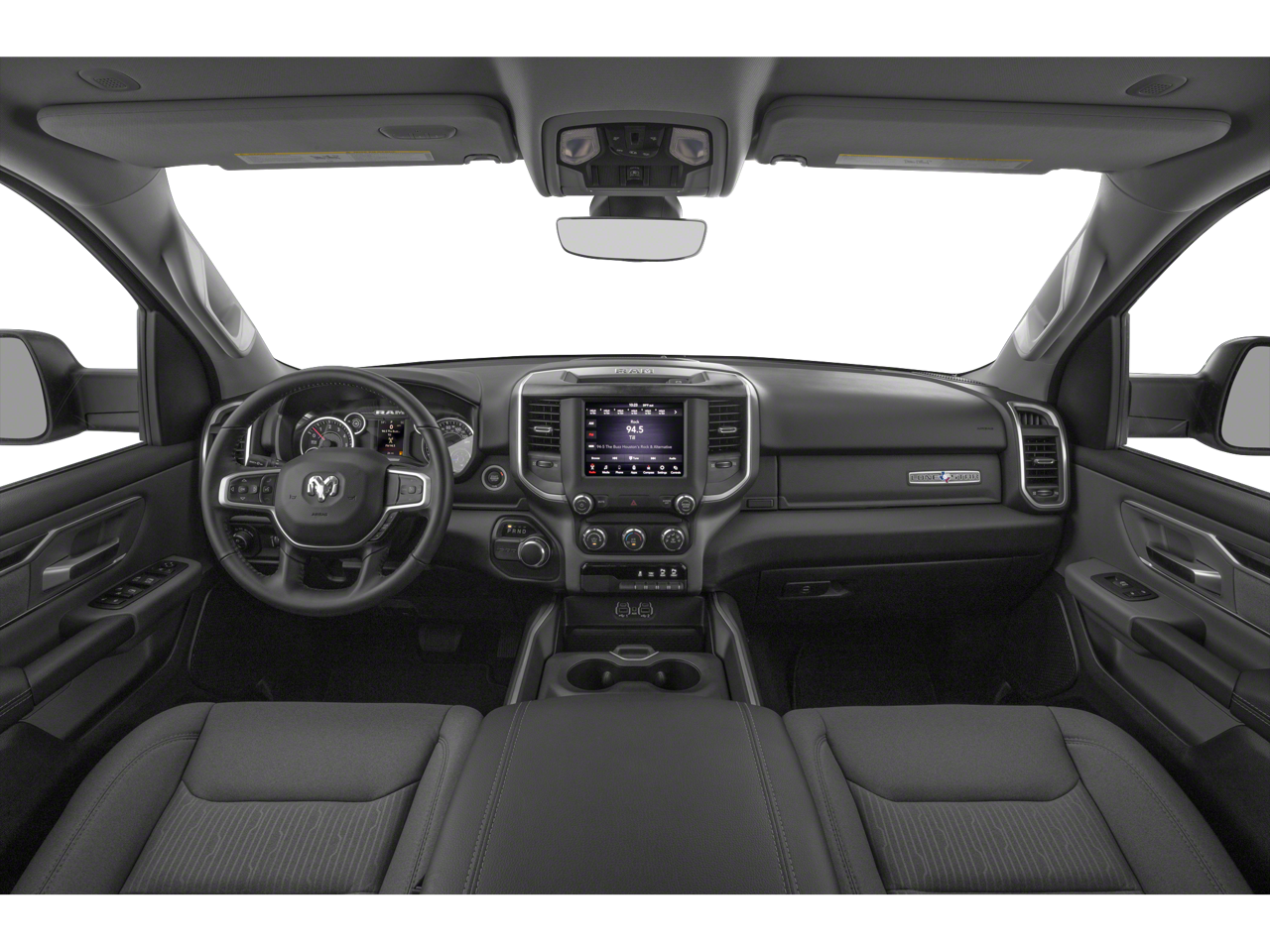 See Dealer for Details, 115V Auxiliary Power Outlet, 115V Auxiliary Rear Power Outlet, 2 USB Full Function/Charge Only Media Hub, 2nd Row In Floor Storage Bins, 400W Inverter, 6 Speakers, Air Conditioning ATC w/Dual Zone Control, Anti-Spin Differential Rear Axle, Auto-Dimming Exterior Driver Mirror, Auto-Dimming Rear-View Mirror, Big Horn Badge, Big Horn IP Badge, Big Horn Level 2 Equipment Group, Black Exterior Truck Badging, Black Headlamp Bezels, Black Interior Accents, Black Premium Power Mirrors, Body Color Door Handles, Body Color Exterior Mirrors, Body Color Front Bumper, Body Color Premium Power Mirrors, Body Color Rear Bumper w/Step Pads, Class IV Receiver Hitch, Dampened Tailgate, Deluxe Cloth Bucket Seats, Dual Exhaust w/Black Tips, Exterior Mirrors Courtesy Lamps, Exterior Mirrors w/Memory, Foam Bottle Insert (Door Trim Panel), Front LED Fog Lamps, Glove Box Lamp, GPS Antenna Input, Grille Surround 1 Black Texture 2 Black, Heated Front Seats, Heated Steering Wheel, LED Reflector Headlamps, LED Taillamps, Night Edition, ParkSense Front/Rear Park Assist w/Stop, ParkView Rear Back-Up Camera, Power 4-Way Driver Lumbar Adjust, Power 8-Way Driver Seat, Power Adjustable Pedals, Power-Folding Mirrors, Premium Lighting Group, Quick Order Package 23Z Big Horn, Radio data system, Radio: Uconnect 3 w/5 Display, Radio: Uconnect 4 w/8.4 Display, Rear Dome w/On/Off Switch Lamp, Rear Power Sliding Window, Rear Window Defroster, Security Alarm, SiriusXM Satellite Radio, Sun Visors w/Illuminated Vanity Mirrors, Universal Garage Door Opener, Wheels: 20 x 9.0 Premium Paint/Polished.