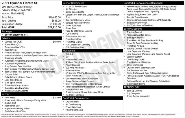 Back-Up Camera, iPod/MP3 Input, Bluetooth®, Aluminum Wheels, Apple CarPlay® Hyundai SE with Calypso Red exterior and Black interior features a 4 Cylinder Engine with 147 HP at 6200 RPM*.