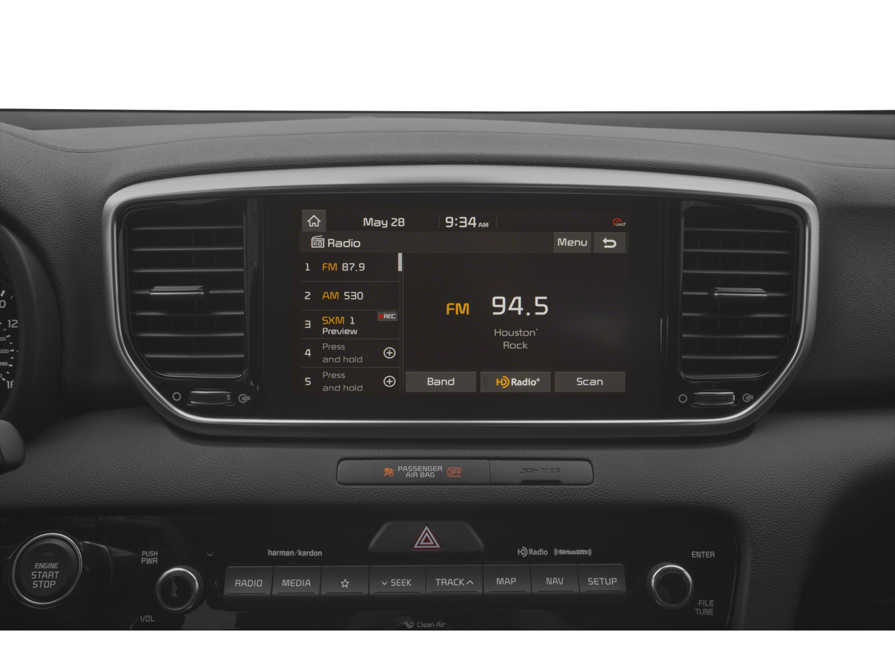 - Radio: AM/FM/SiriusXM Audio System -inc: 8" touchscreen, navigation, 8 speakers including subwoofer, 320 watt harman/kardon premium audio, Clari-Fi, UVO telematics, Apple CarPlay & Android Auto, voice recognition, USB/aux input ports, wireless phone charging, steering wheel controls and Bluetooth® w/audio streaming